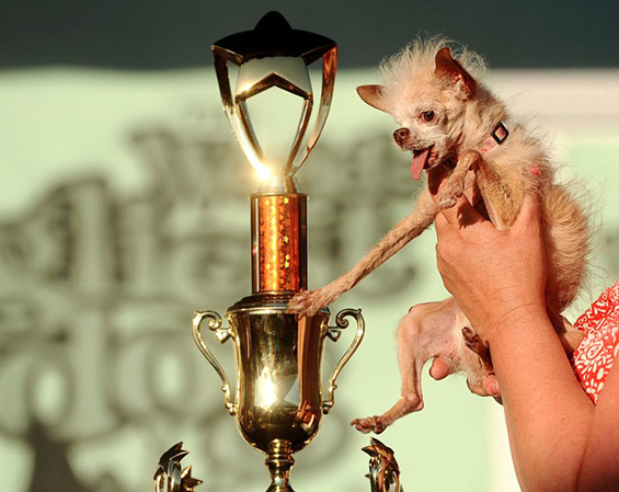 Јода е прогласен за најгрдото куче на светот. Со своите ретки и кратки влакна по телото, исплазен јазик и крупни истакнати очи, Јода ги освои срцата на публиката и судиите на натпреварот одржан во Калифорнија. Покрај незвучната титула Најгрдо куче, Јода доби и 1000 долари и голем трофеј.