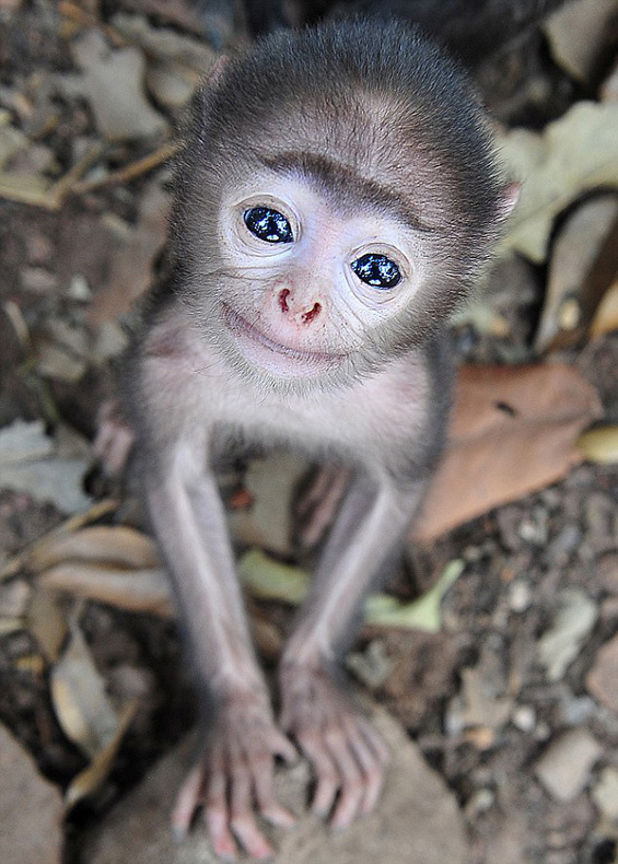 Големите сини очи на ова мало мајмунче ќе продрат длабоко во вашата душа. Мајмунчето со мил поглед било фотографирано во храм во Бхубанешвар, Индија, каде што живее група диви мајмуни.