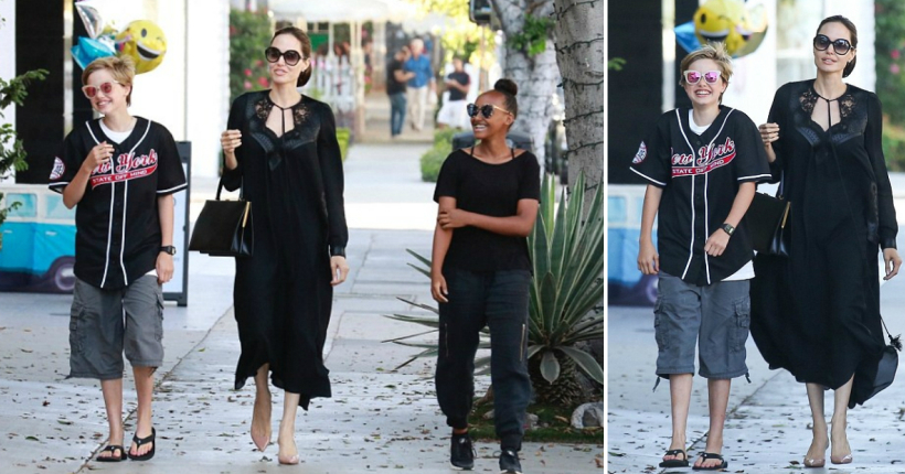 Вчера, 43-годишната ѕвезда од „Maleficent“ беше фотографирана насмеана и среќна на шопинг со 13-годишната Захара и 12-годишната Шајло. Џоли беше облечена во црн фустан, кој го надополни со кремови салонки.