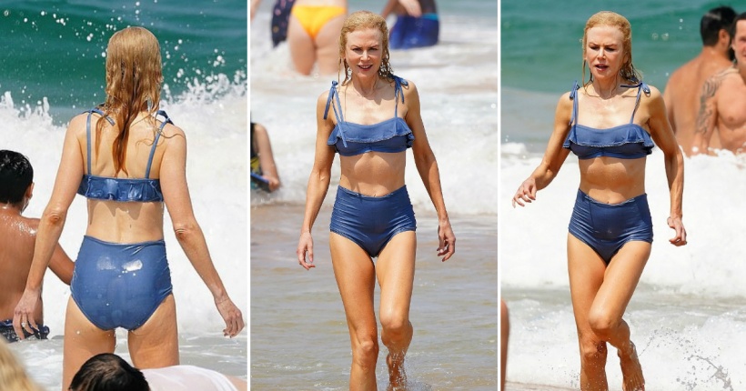 52-годишната холивудска ѕвезда беше фотографирана во сини бикини на плажа заедно со нејзиниот сопруг Кит Урбан. Фотографиите изнудија само комплименти за одржаниот изглед на Кидман.