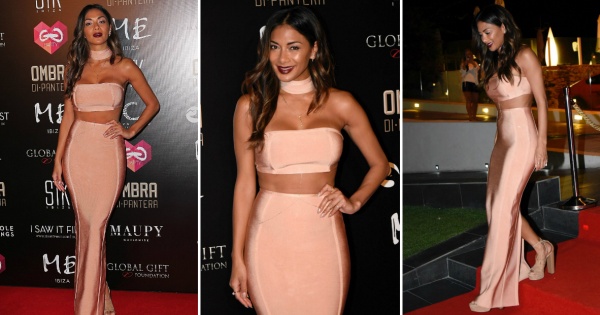 На свеченоста, 38-годишната поранешна членка на The Pussycat Dolls се појави во сексапилна комбинација од брендот House of CB која ѝ го оцртуваше тонираното тело.