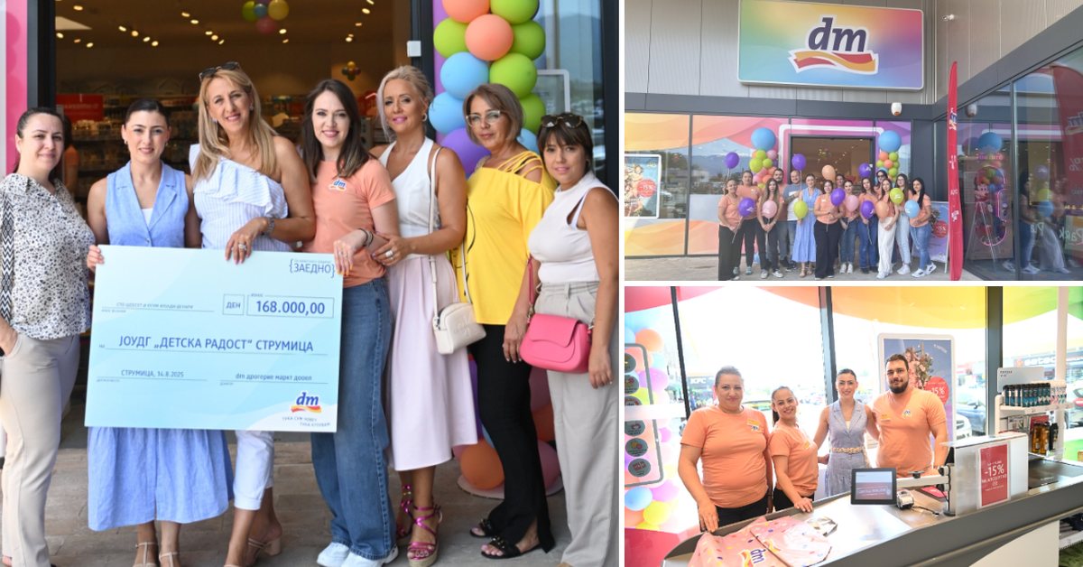 Со попуст од -15% на апсолутно сѐ, многу подароци и забавна атмосфера, dm drogerie markt на 14 август ја отвори својата нова дрогерија во „Symbol Retail Park“ на ул. „Братство Единство“ бр. 63 во Струмица!