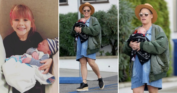 Пинк го донесе на овој свет синчето Џејмисон на 26 декември минатата година. 37-годишната пејачка вчера беше фотографирана со целото свое семејство во Малибу.