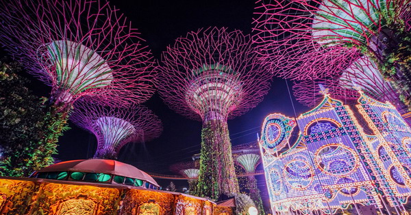 Во срцето на Сингапур, на површина од 35.000 m2, посетителите можат да уживаат во визуелен спектакл. Милиони сијалички ги осветлуваат грандиозните дрва, ледениот „замок“ и цветната купола.