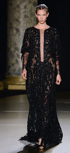 Карли Клос го отвори шоуто со црна блескава креација, а веднаш по неа беа презентирани повеќе од 40 елегантни фустани. Ревијата беше поделена во блокови од бои – црната боја го означи стартот на ревијата, а потоа следуваа нежната боја на праска и светло сини, темно тиркизни, бежови и златни нијанси.