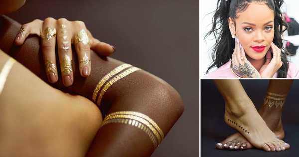 Тетоважите доаѓаат во црна и златна боја и се инспирирани од готскиот стил, а се резултат на соработка помеѓу Ријана и дизајнерката на накит Џеки Ејш.