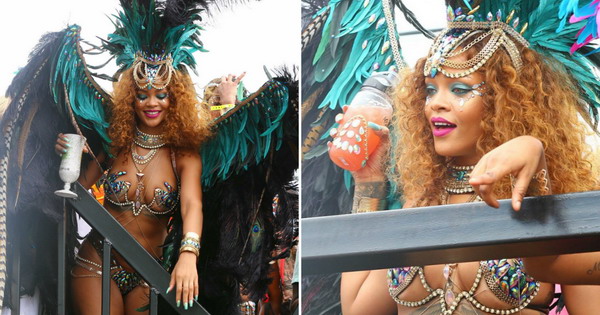 За традиционалниот карневал кој секоја година се одржува во Барбадос, 27-годишната музичка ѕвезда носеше костим составен од блескави минијатурни бикини со кристали и крилја и шапка од пердуви. Ексцентричниот костум бил инспириран од филмовите „The Hunger Games“.