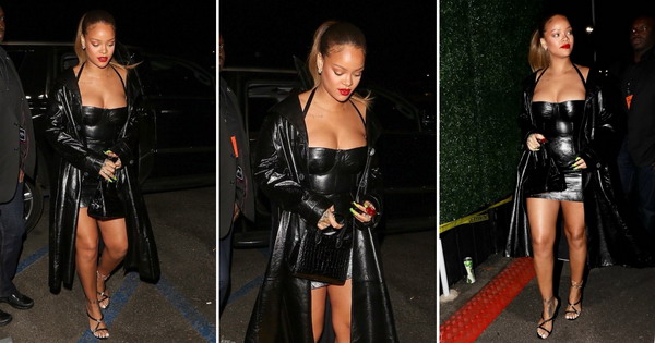 На музичкиот настан, ѕвездата од Барбадос носеше тесен кожен фустан кој ги истакна нејзините облини и складен мантил. Впечатливиот стајлинг таа го надополни со сандали од Џузепе Ѕаноти.