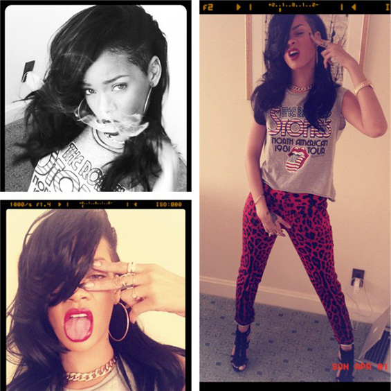 Само два дена претходно Ријана имаше објавено фотографии на кои има руса коса. Во моментов таа е во Јапонија за премиерата на нејзиниот прв филм „Battleship“, па фотографиите се направени во нејзината хотелска соба со прекрасен поглед на Токио.