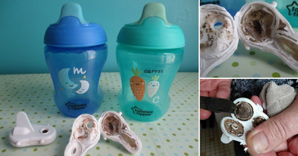 Мојот пријател Сајмон О’канада се прашуваше зошто неговиот син е постојано болен. Го расклопи клунчето што спречува протекување од неговата „Tommee Tipee“ чаша и откри мувла внатре во делот од кој се пие. Мувлата не може да се измие и не е видлива освен ако делот не се расклопи. Сајмон се јави да се пожали во компанијата и жената која одговори му се изнасмеа. Неколку други мајки исто така открија мувла откако мојата објава беше споделена во други групи, па ви ги споделувам фотографиите.