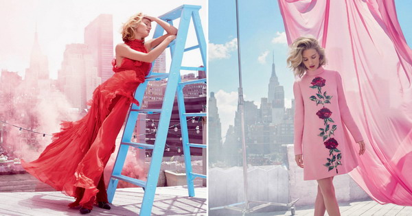 Врвни брендови како Диор, Долче и Габана, Џими Чу, Прада и Александар МекКвин позајмија свои креации за едиторијалот „Rose“.