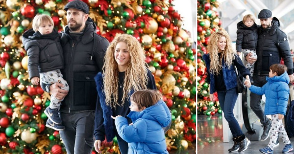 На фотографиите, Шакира го води за рака 4-годишниот Милан, додека Пике го носи в раце 2-годишниот Саша.