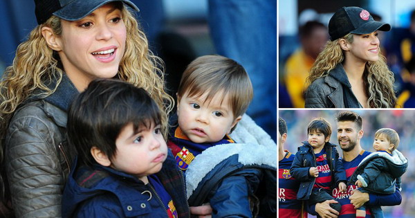 Шакира со Милан и Саша го бодреше Пике од трибините на Камп Ноу во Барселона, Шпанија.