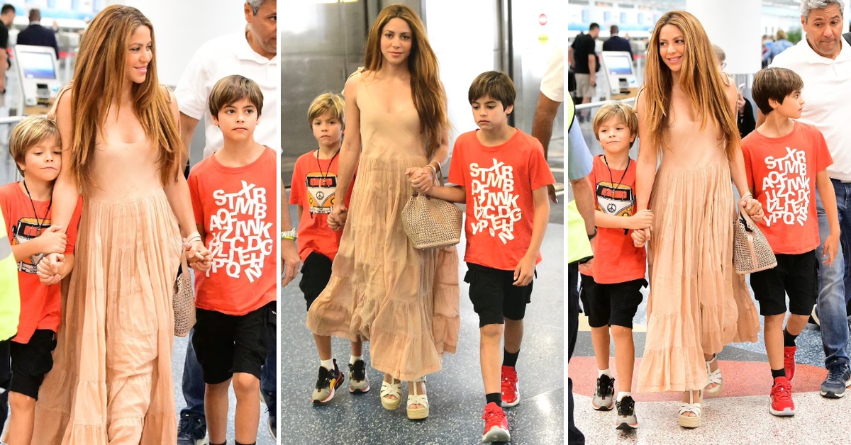 Деновиве, 45-годишната Колумбијка беше видена на аеродром во Мајами. Славната пејачка ги држеше за рака синовите Милан и Саша, додека беше фотографирана од папараците.