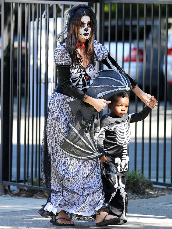 Шармантната филмска ѕвезда и малото момче биле фотографирани во „хорор“ издание за забава за Халовин (Ноќта на вештерките). Костимот на Сандра бил инспириран од мексиканскиот Ден на мртвите, додека Луис бил облечен во „скелет“ костим.