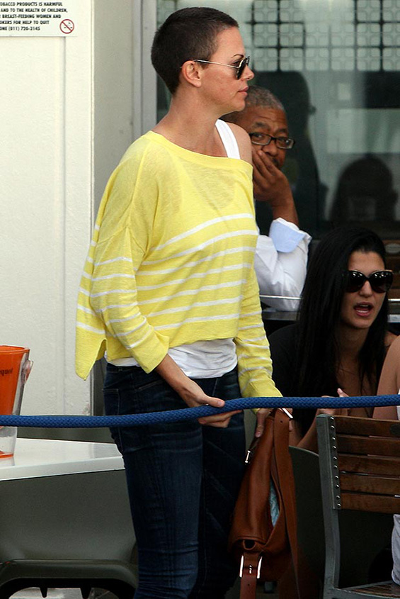 Шарлиз Терон за првпат ја покажа во јавност својата бричена глава. Убавата актерка која сме навикнати да ја гледаме со долга руса коса е речиси непрепознатлива на новите фотографии направени во Кејптаун, Јужна Африка.
