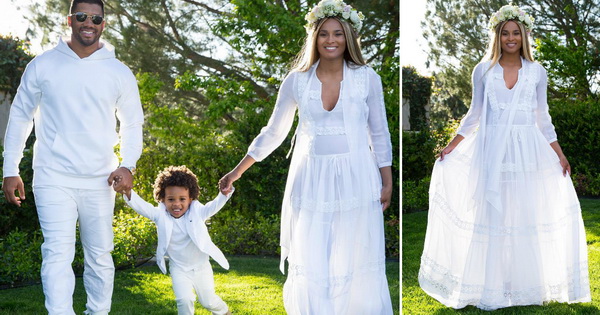 Сите присутни носеа бела облека, вклучително и нејзиниот сопруг Расел Вилсон и нејзиниот син Фјучр.