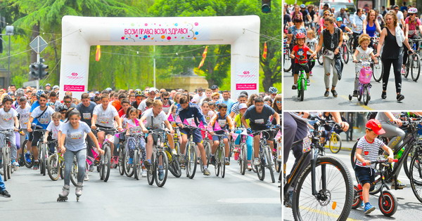 Скопје на тркала... Над 2.000 лица возеа на велосипеди, ролери и тротинети во рамките на ревијалната трка „Вози право, вози здраво“ која денес се одржа во Скопје.