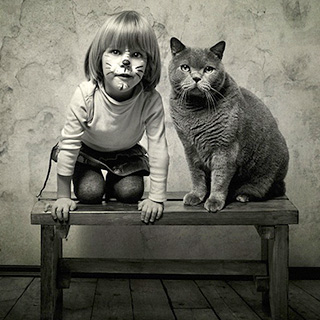 Колекцијата фотографии на Енди Прокх од Санкт Петербург, која ја овековечува веселата дружба на неговата ќерка и нејзината мачка, постепено си ја зголемува популарноста на интернет. Речиси никој не може да остане рамнодушен на креативните црно-бели фотографии кои доловуваат интересни моменти од игрите на малата Катерина и мачката Лили Блу Ројал Лада.