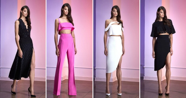 Женствените креации нежно го прегрнуваат телото и најчесто се еднобојни, со исклучок на два модели кои привлекуваат со тропски „омбре“ ефект. Динамиката е постигната преку флуидни набори и асиметричност кај кроевите.