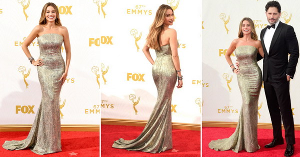 Софија Вергара блескаше на црвениот тепих на Еми 2015. Привлечната Колумбијка ја истакна својата фигура во долг тесен фустан.