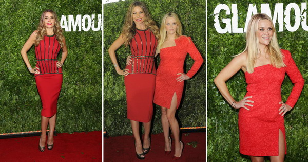 42-годишната Вергара носеше тесен фустан од Аманда Вејкли, додека 39-годишната Витерспун заведуваше во асиметричен фустан со висок шлиц од Сен Лоран и обувки од Кристијан Лобутин.
