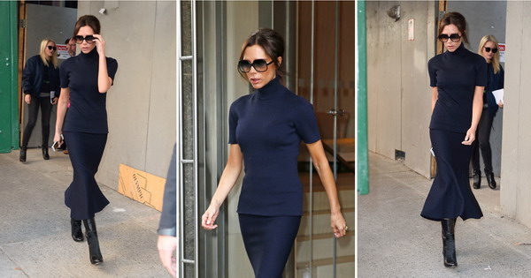 Нејзиниот минималистички и софистициран изглед поттикна многу позитивни коментари од модни критичари и нејзини фанови. Темното здолниште тип „труба“ и ролката се креации на Викторија.