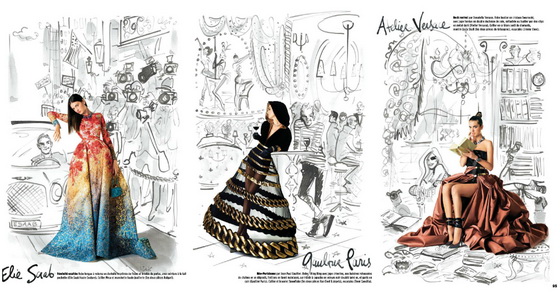 Екстравагантни фустани од високата мода на врвните модни куќи Ели Сааб, Жан Пол Готје, Диор, Версаче, Џамбатиста Вали, Шанел и Валентино се во фокусот на моден едиторијал на француското списание „Gala“.