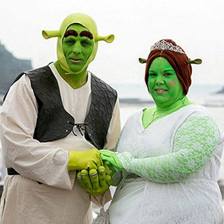 Пол и Хајди Белас си го кажаа судбоносното ДА облечени како Шрек и Фиона од познатиот анимиран филм. 42-годишниот младоженец си го обоил и лицето со зелена боја за да може што повеќе да наликува на измислениот лик.