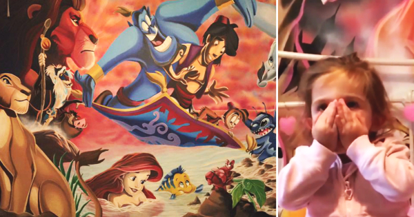 Татко ја насочи целата своја креативност кон собата на ќерка си за да ѝ создаде детско царство со омилените ликови на Дизни. Нејзината реакција е скапоцена.