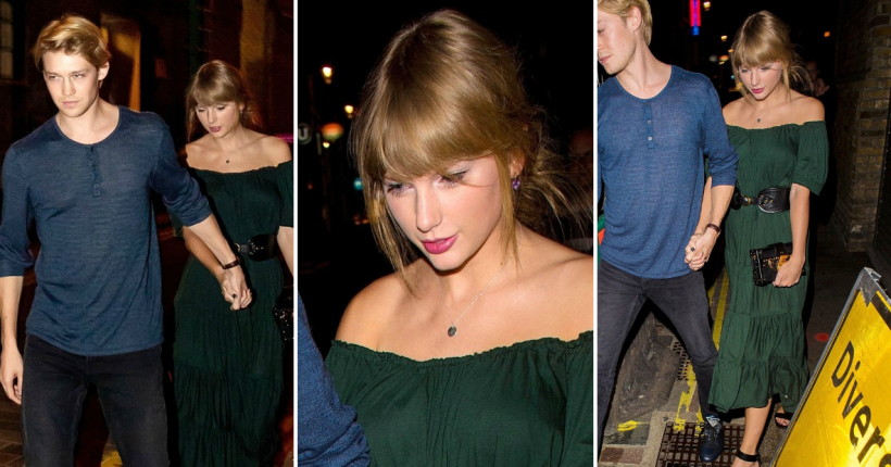 28-годишната пејачка и 27-годишниот актер беа фотографирани пред ресторан во Лондон. Славната музичарка носеше темнозелен фустан од Free People, кој го надополни co црн колан, црни сандали и црна чантичка со нејзините иницијали.