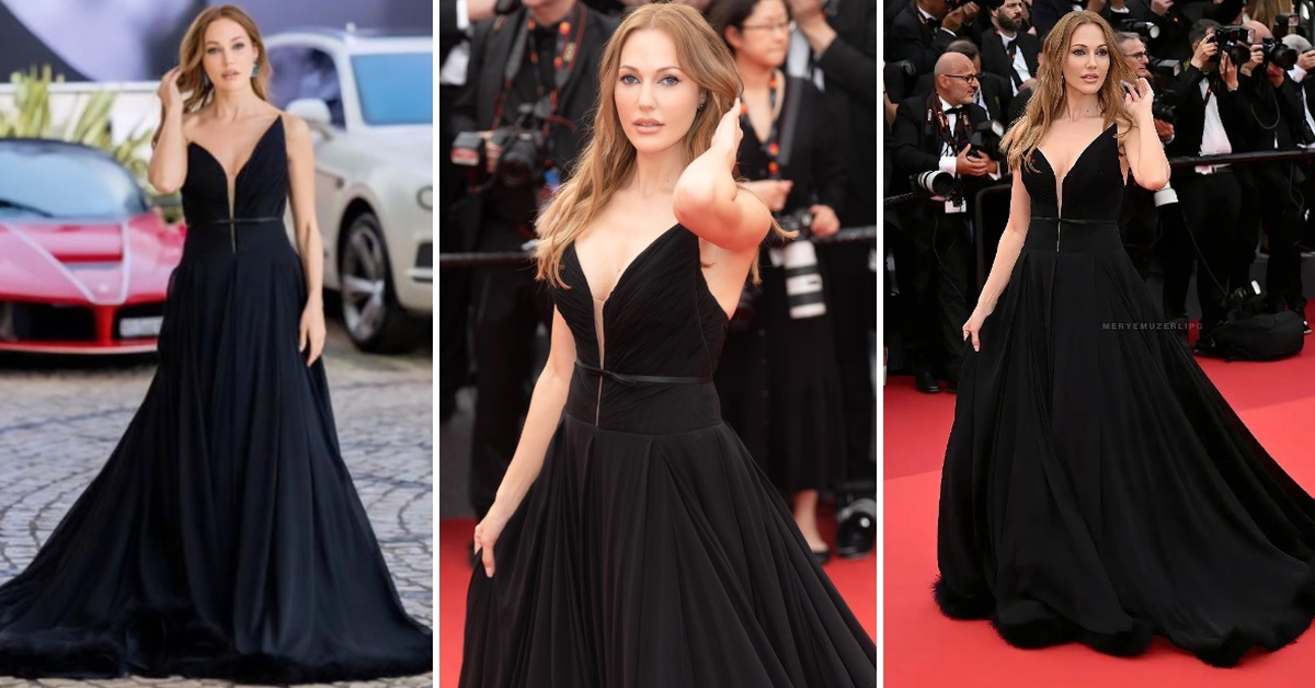 На црвениот тепих на отворањето на овогодишната манифестација, турската актерка се појави во црна креација од германската модна куќа Maison Novague.