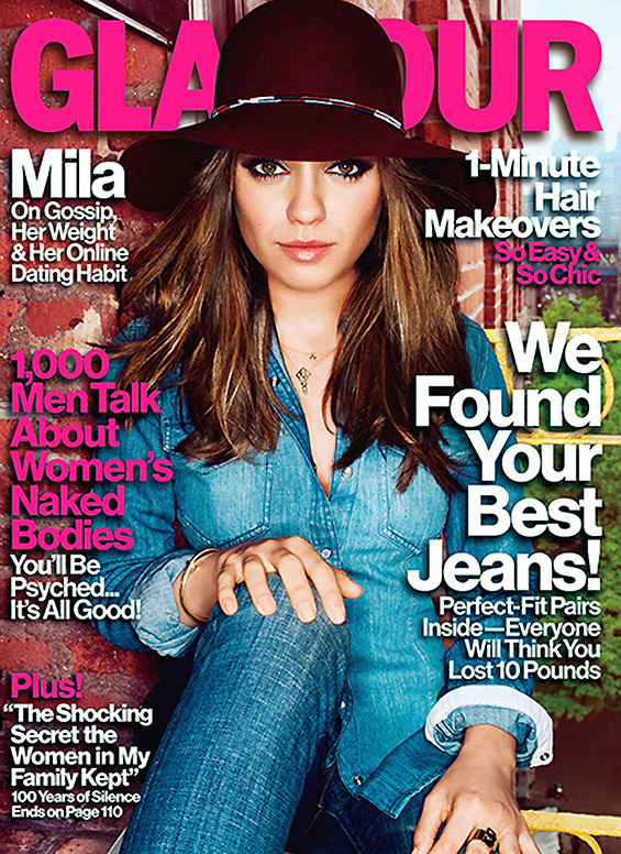Мила Кунис изгледа шармантно во новата фотосесија за „Glamour“, во која филмската ѕвезда позира во неколку џинс комбинации. Во интервју за списанието таа зборувала за состанувањето, гласините за врската со Ештон Кучер и промената во изгледот на нејзиното тело.