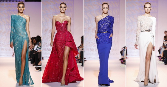 Сензуални силуети, сексапилно разголување со V-деколтеа и високи шлицови, игрива асиметричност претставена преку фустани со еден ракав или на едно рамо, интригантни балски креации со набор на колковите, деликатни блескави детали, пајажинеста и мрежеста текстура, провокативна транспарентност... Зухаир е непогрешлив.