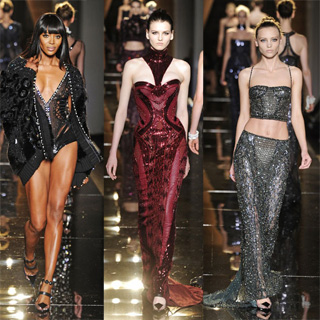 Италијанската модна куќа Версаче го означи стартот на Париската недела на високата мода. Дизајнерката Донатела Версаче се наврати на минатото, црпејќи инспирација од црно-белите фотографии на фотографите Мен Реј и Хорст и избирајќи ја Наоми Кембел за ѕвезда на шоуто.