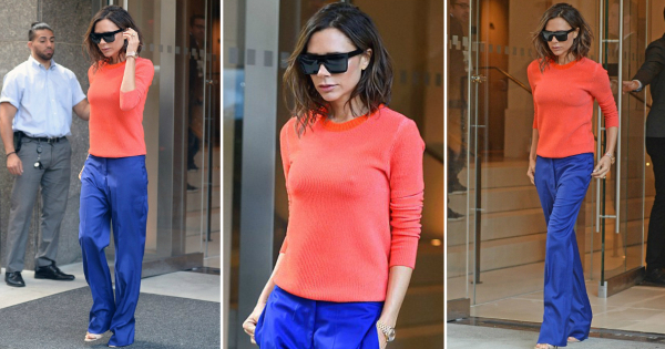 Вчера, 42-годишната дизајнерка беше фотографирана додека излегуваше од својот хотел во Големото јаболко, каде ги прави последните подготовки за својата ревија во рамките на Њујоршката недела на модата. Викторија носеше контрастна сино-портокалова комбинација и очила од сопствената колекција.