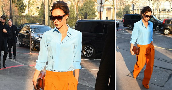 42-годишната дизајнерка беше фотографирана низ улиците во Градот на светлината во сино-портокалова модна комбинација. Креациите се дел од нејзината колекција pre-fall 2017.