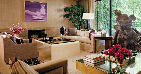 Десетици слики и скулптури од познати уметници ги красат просториите. Коментирајќи го уредувањето, Марк вели: „Не сакам да има еден конкретен концепт или изглед. Само сакам да живеам со нешта кои искрено ги сакам – одличен арт деко мебел, парчиња од 70-тите и современа уметност“.