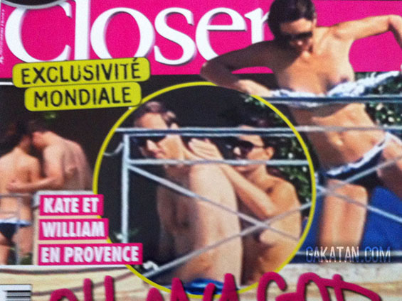 Француското списание „Closer“ денес објави топлес фотографии од Кејт, направени додека таа се релаксира на тераса на приватен замок во сопственост на внукот на кралицата, Лорд Линли. Фотографиите се сликани од огромна дистанца и се заматени, но на нив јасно се гледа кралскиот пар, кој тогаш бил на краток одмор во Франција.
