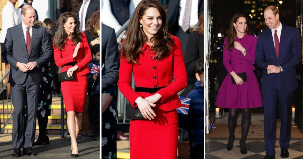 Ова е третпат, Кетрин да го носи црвениот костум од Луиза Спањоли. Првпат таа го носеше во 2011 година за посета на универзитетот „St Andrews“, а потоа во 2014 година за посета на Нов Зеланд со својот сопруг.