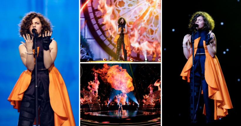 На сцената, 14-годишната пејачка од Прилеп настапи облечена во портокалово и црно, боите на огнот. Иако има повреда на десната нога, Мила имаше одлична изведба на нејзината песна „Fire“.
