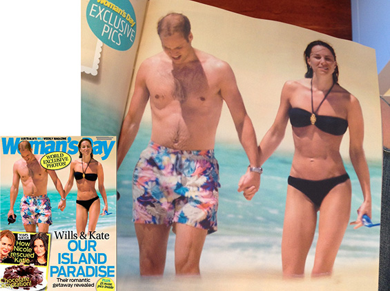 Австралиското списание „Woman’s Day“ објави фотографии од медениот месец на војвотката Кетрин и принцот Вилијам. Иако новинарите беа замолени да ја почитуваат приватноста на младоженците, сепак некој успеал да стигне до локацијата каде уживаше парот по големата свадба минатата година.