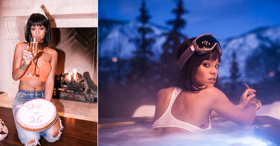 На фотографиите Ријана слави со неколку торти, се забавува со снежни игри, се учи да скија и ужива во топла бања на снегот.