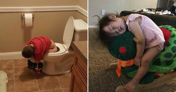 Независно дали седат на WC школката во тоалетот, скокаат на трамболина, се лулаат, гледаат натпревар или се во ресторан, малите палавковци немаат проблеми со заспивањето кога се уморни.