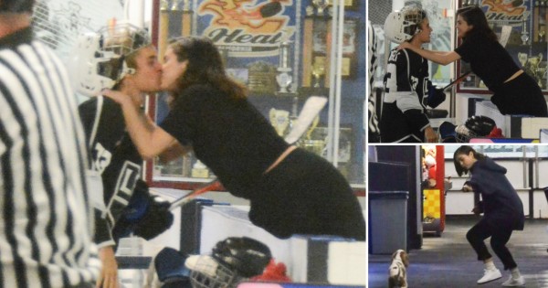 25-годишната пејачка и 23-годишниот пејач си разменија бакнежи за време на негов хокеј натпревар во Вентура, Калифорнија.