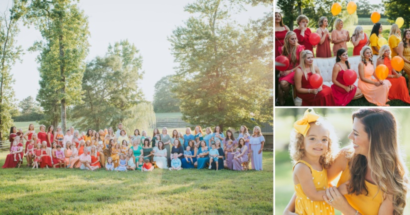 На фотографиите позираат 40 мајки со нивните деца облечени во боите на виножитото.