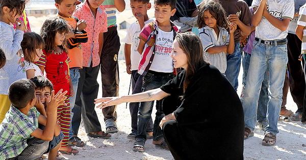 За време на својата четврта посета на Јордан, Анџелина изјави: „Тука има деца кои не се сеќаваат на друг живот освен на оваа сурова, пустинска околина и огради со бодликава жица. Тука има тинејџери кои носат ужасни ментални и физички рани од конфликтот. Над половина од бегалците во Јордан се под 18 години. Моите деца се на таа возраст и како и секој друг родител, невозможно е да не си замислам како би било кога моите деца би биле во ваква ситуација и ми се крши срцето.“