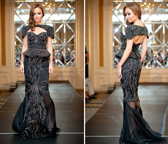 Еден од најскапите фустани на светот заблеска на ревија во Киев. Долгиот црн вечерен фустан чини повеќе од 4 милиони евра, а е украсен со 50 црни дијаманти од два карати.