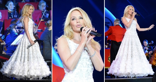 ФОТО/ВИДЕО: Кајли Миног во бел фустан настапи пред кралицата Елизабета за нејзиниот 90. роденден