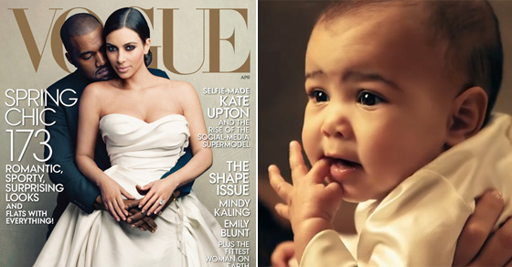 Денес беше објавена корицата од априлското издание на модната библија на која позираат Ким и Кание. Фотосесијата за списанието е направена од врвната фотографка Ени Либовиц.